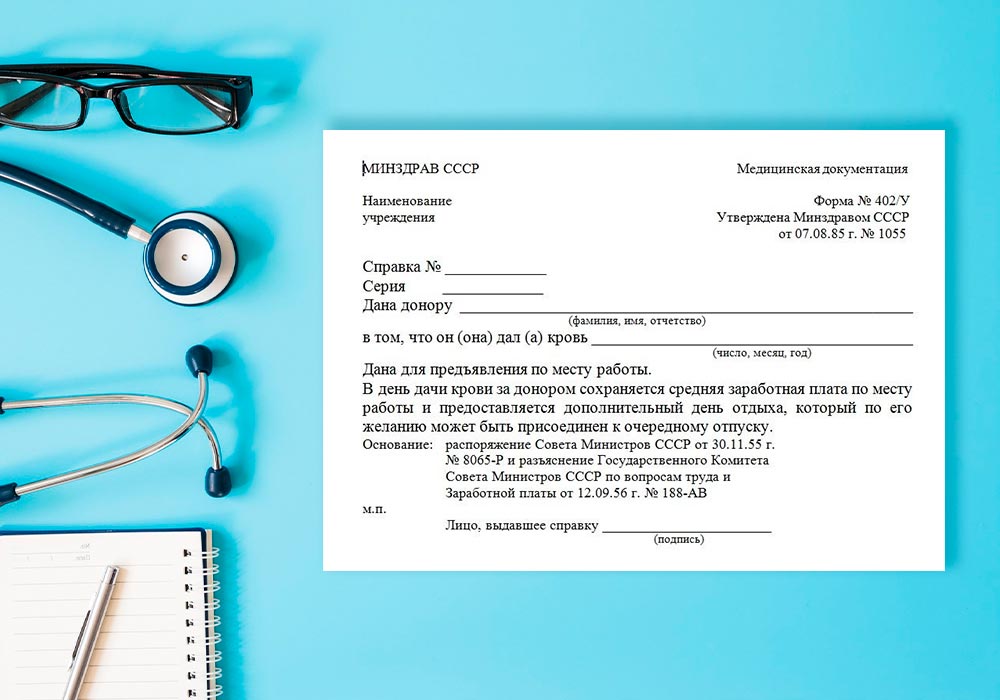 Справка донора крови по форме 402/у в Москве недорого и профессионально оформляется квалифицированными и дипломированными специалистами современного медицинского центра «ЛегалСправ» с применением персонального подхода к каждому пациенту. На основании наличия такой бумаги человек имеет право на получение ряда льгот и привилегий. Например, в день сдачи крови человек получает выходной на своём рабочем месте по уважительной причине.