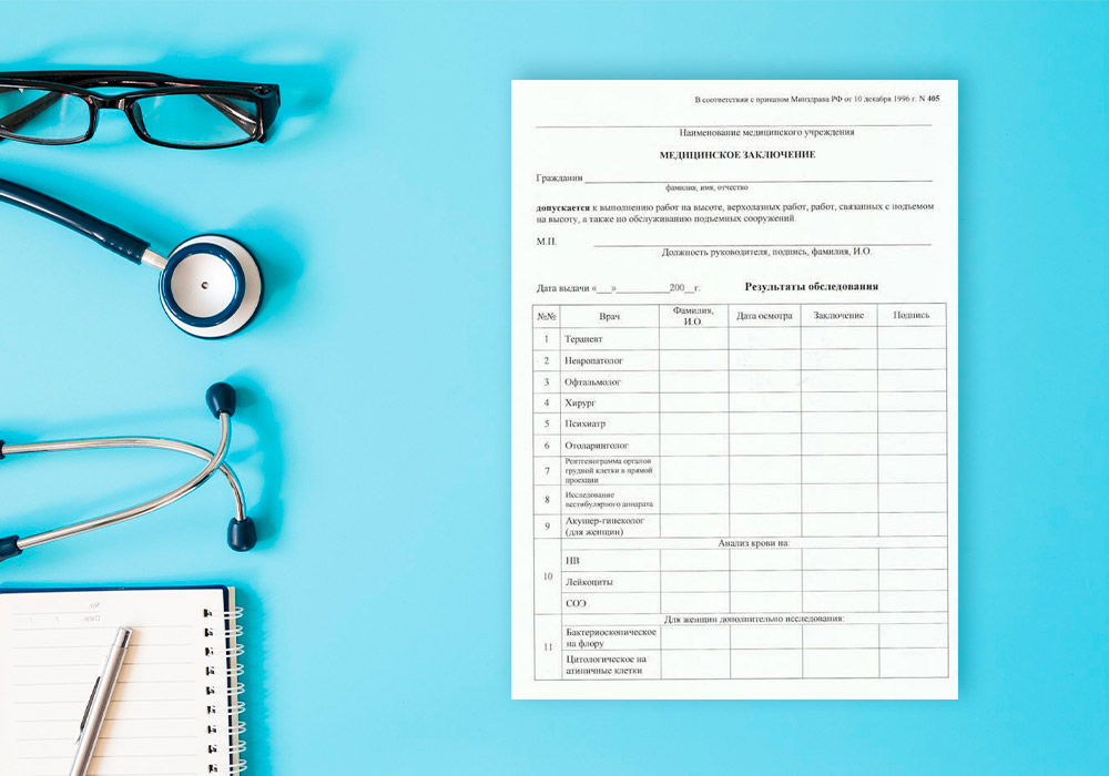 | Мед. справка для работы на высоте (форма 405) | от 1100 руб. |